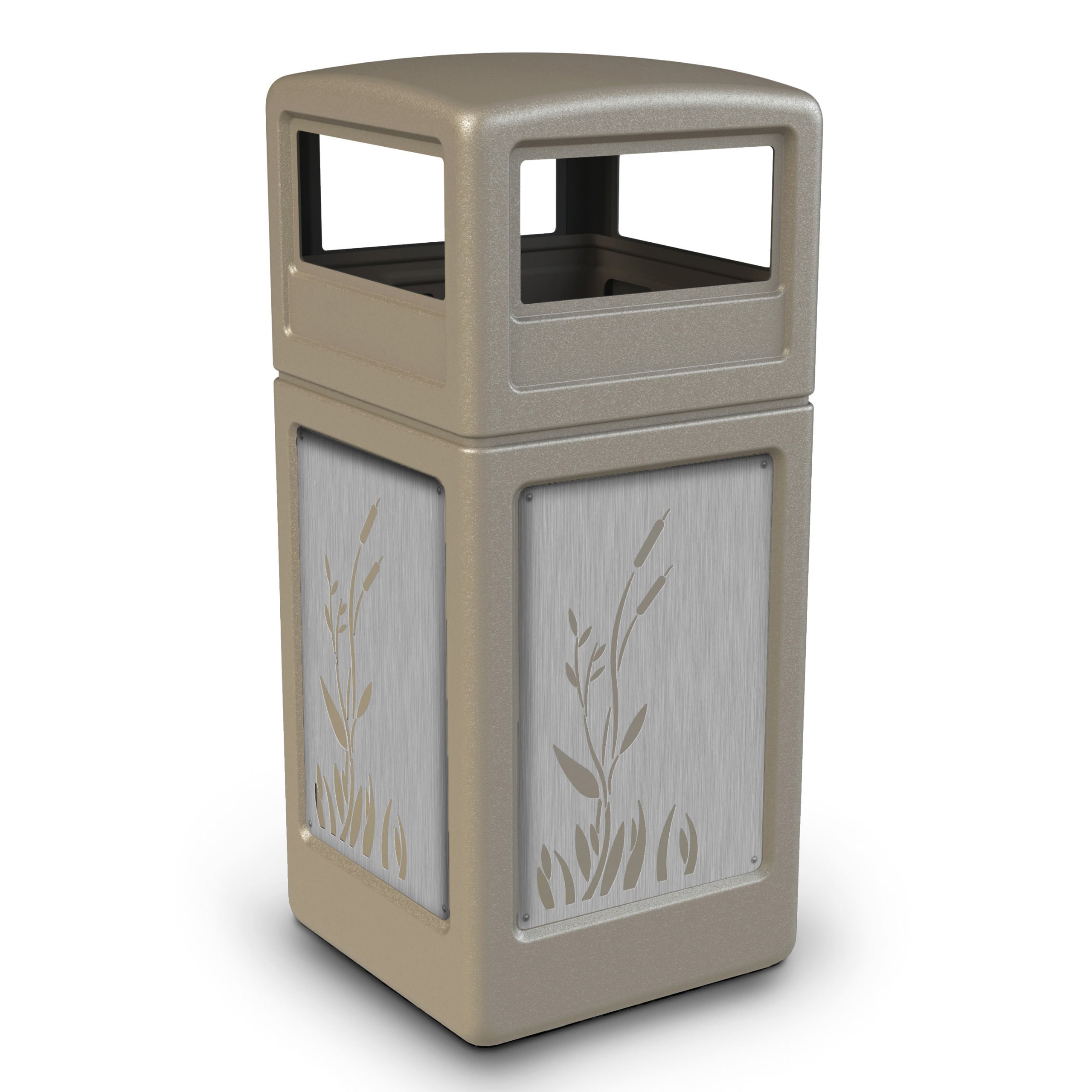 Add eye-catching detail to your space with a trash receptacle that’s as memorable as it is durable. Decorative stainless steel panels featuring an intersecting line design pair with recycled polyethylene to create a modern look that blends well with any contemporary space. The covered dome lid keeps the elements out and provides convenient access to disposal on all four sides.